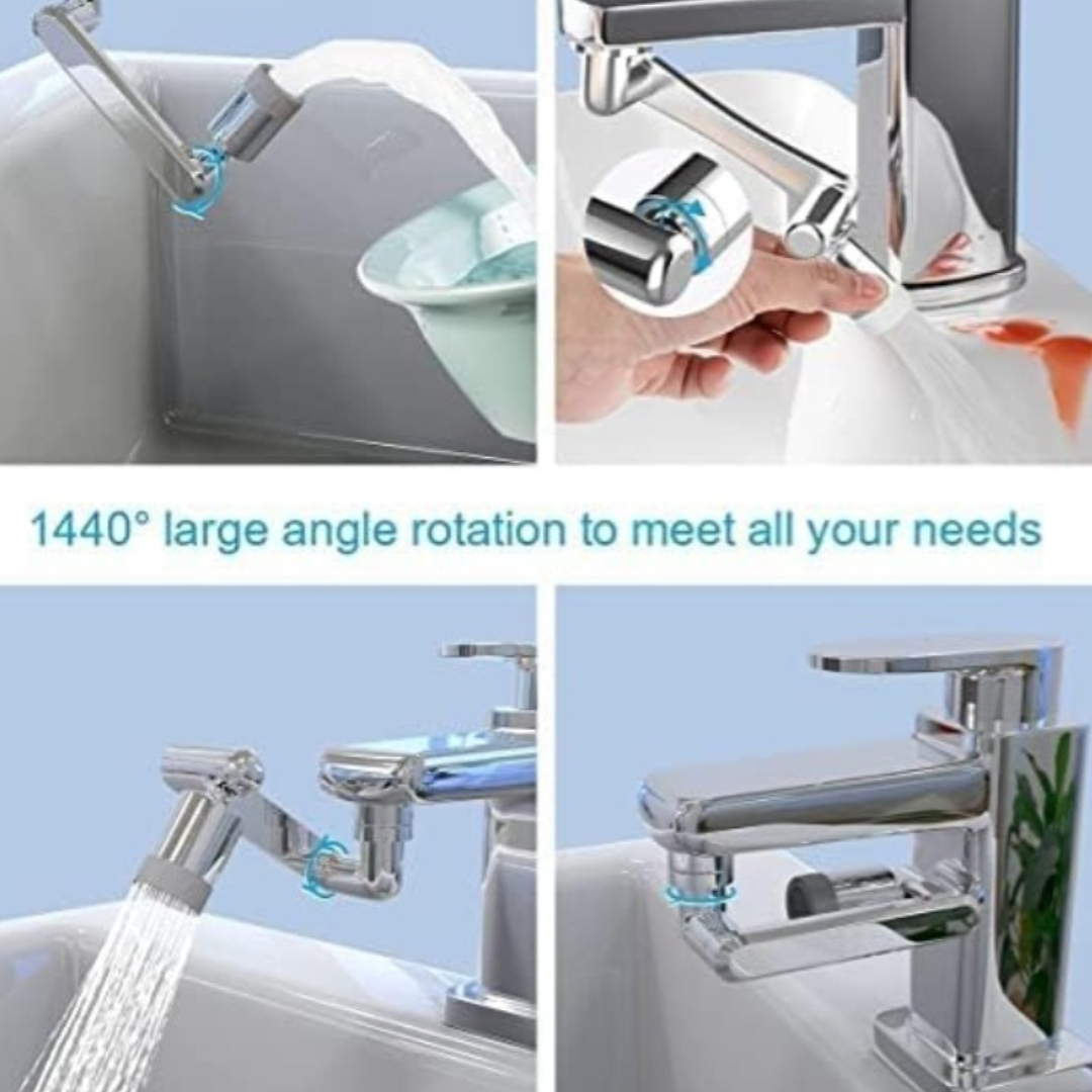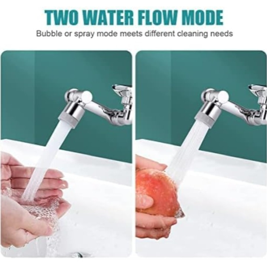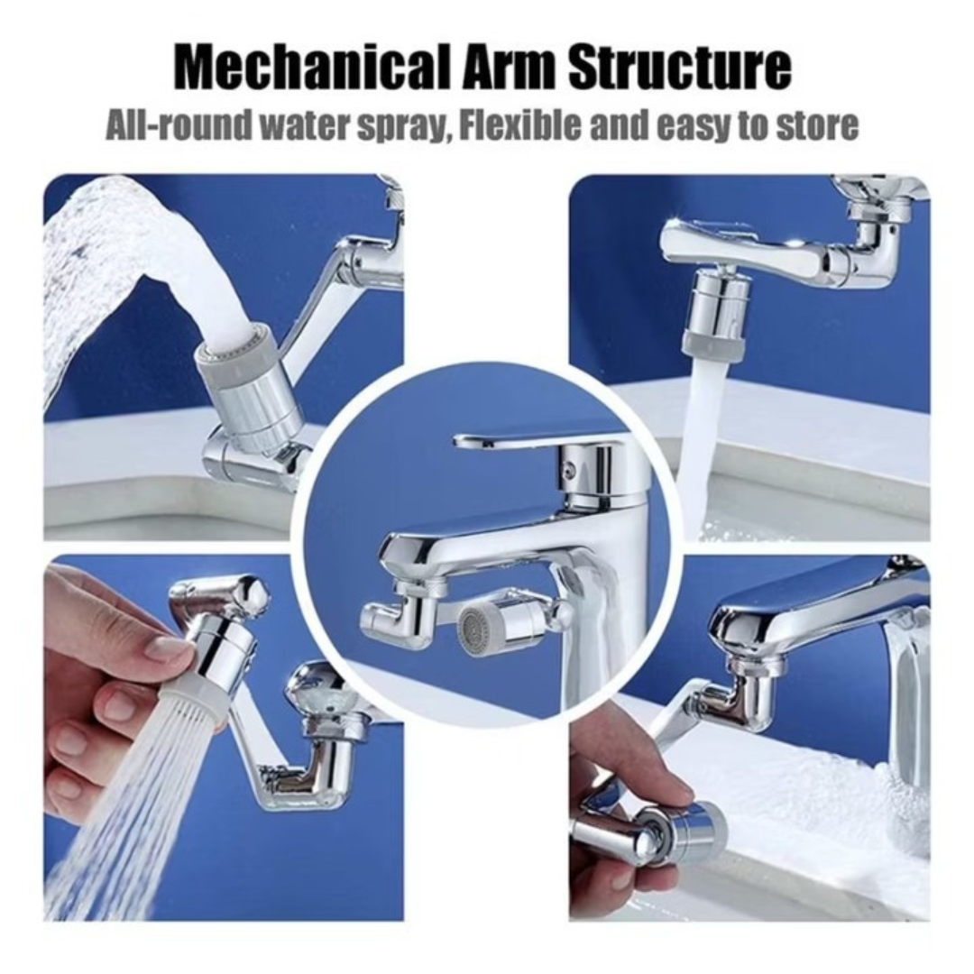 1440° Free Rotation: Flexible robotic arm design with 4 ports fits 22mm external and 24mm internal thread faucets, reaching every sink corner — perfect for easy face, hair, and teeth washing.