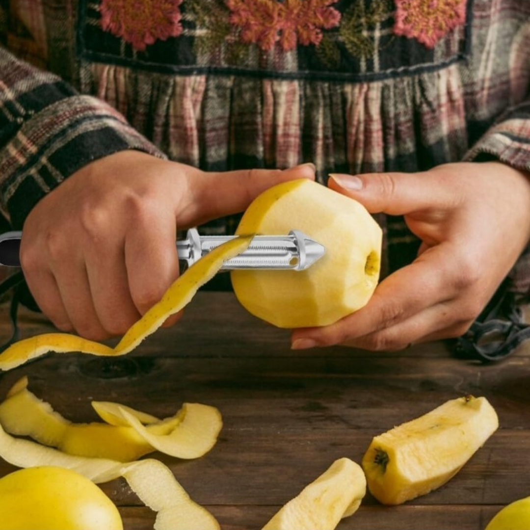 Effortlessly peel smooth or tough skins, create perfect julienne cuts, and remove potato eyes with ease. This all-in-one tool makes prep faster, easier, and mess-free