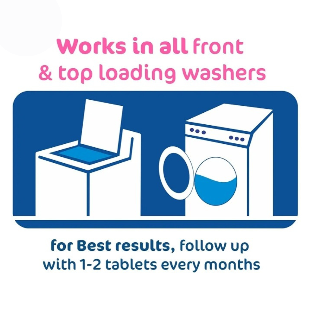 Effectively dissolves and removes stubborn residue, dirt, and hidden buildup inside your washing machine. No scrubbing needed—just drop a tablet, run a cycle, and see the difference